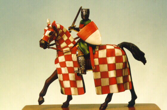 Quindi, forte dei miei propositi affronto sdegnato la prima vetrina, quella dei brutti ma collezionabili. Guardo dritto, senza sbirciare nel “cestino di Alberto”, quello con tutti i pezzi in offerta ma dimenticati da Dio. Non mi faccio tentare da libri, riviste e accessori vari. Non voglio che questo pezzo che comprerò, magari bellissimo, non sia di quelli che magari scambio, perché indifferenti alla mia collezione che, ambiziosa, vuol documentare l’evoluzione dell’armatura medievale italiana. Quindi, salto a piè pari i modelli di Leibovitz. Punto dritto alla vetrina dei medioevali in 54mm. Lì di fronte, ogni volta ho un tentennamento. Un cavaliere sta pur sempre a cavallo! E quello è bellissimo! Ma significa raddoppiare costi e soprattutto il tempo. Così rifletto. In lotta con i miei propositi alla fine vinco la tentazione del cavallo con gualdrappa, e sarà pedone.