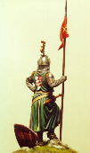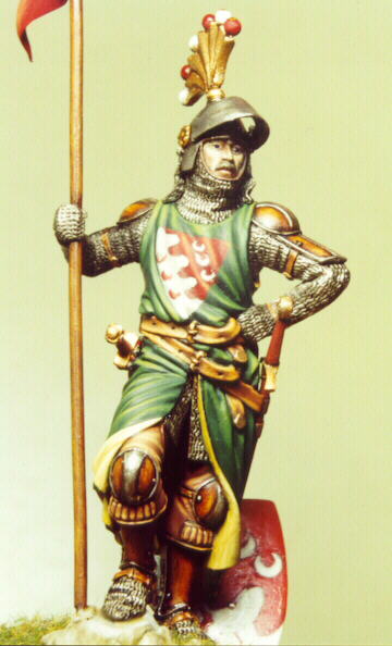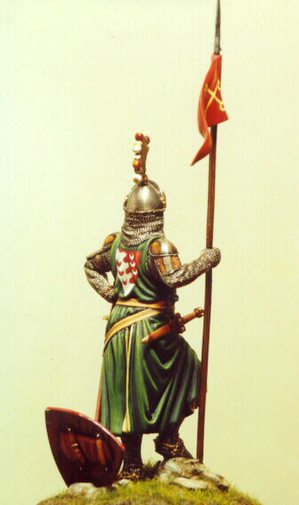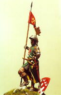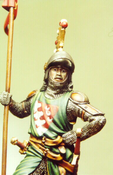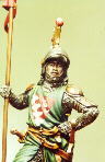 Così si profila un soldatino ideale, un signorotto appiedato, in posizione d’attesa, completo di tutto punto, con un’armatura “datata”.