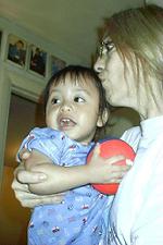 Special Watch A little boy must cry a bit, but one needn't be concerned: Mommy's holding special watch that will not be disturbed.